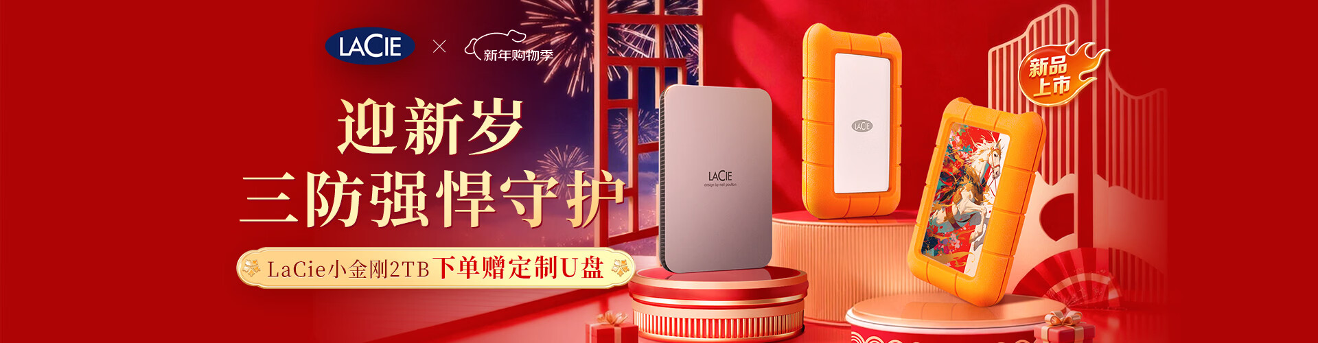 LaCie雷孜小金刚 移动硬盘 三防 2TB Rugged 加密 机械硬盘USB Type-C/USB3.2 兼容mac 便携防跌 外接