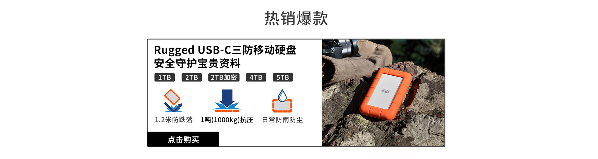 LaCie雷孜小金刚 移动硬盘 三防 2TB Rugged USB-C 机械硬盘 USB Type-C/3.2 兼容mac 便携防跌 外接